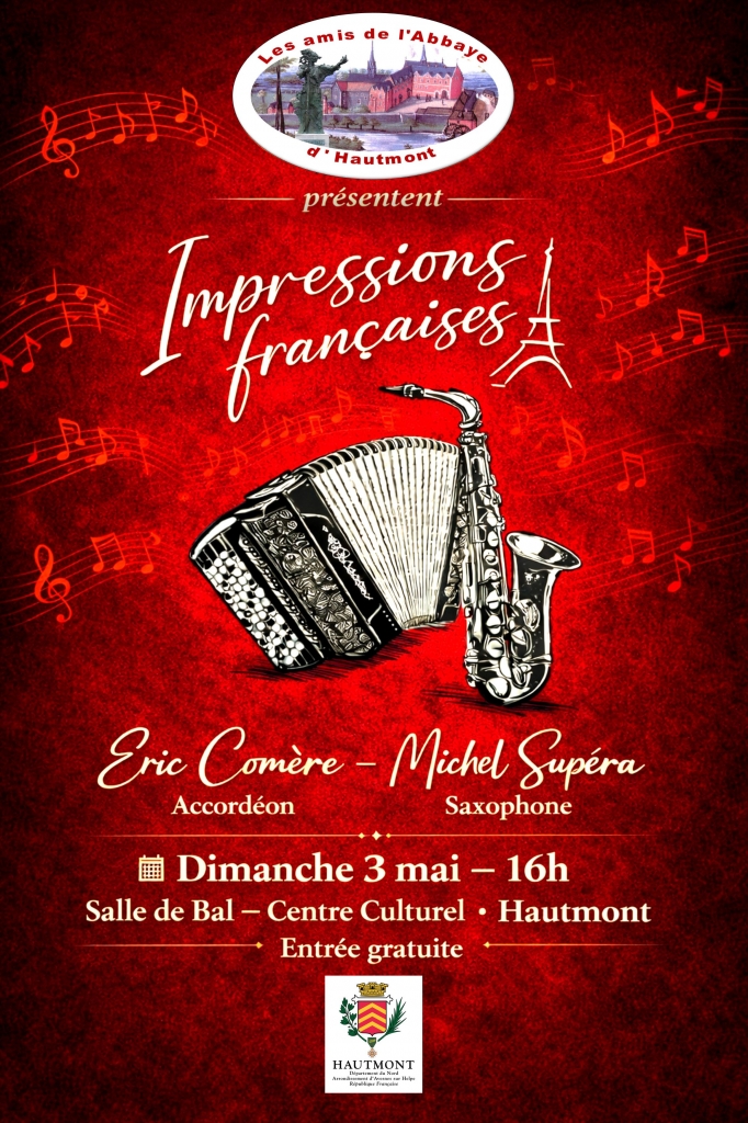 Après les voyages d’Est en Ouest, titre de leur dernier album à succès, Michel Supéra saxophones et Eric Comère accordéon, nous offrent une pause à Paris où la capitale musicale est source d’inspiration de leur nouveau programme… Les subtiles harmonies de Georges Bizet, Erik Satie et Claude Debussy se croisent avec nos belles chansons françaises composées par Francis Lemarque, Edith Piaf, Louguy entourées par la musique de Gabriel Yared et d’une création de Baptiste Trotignon.
